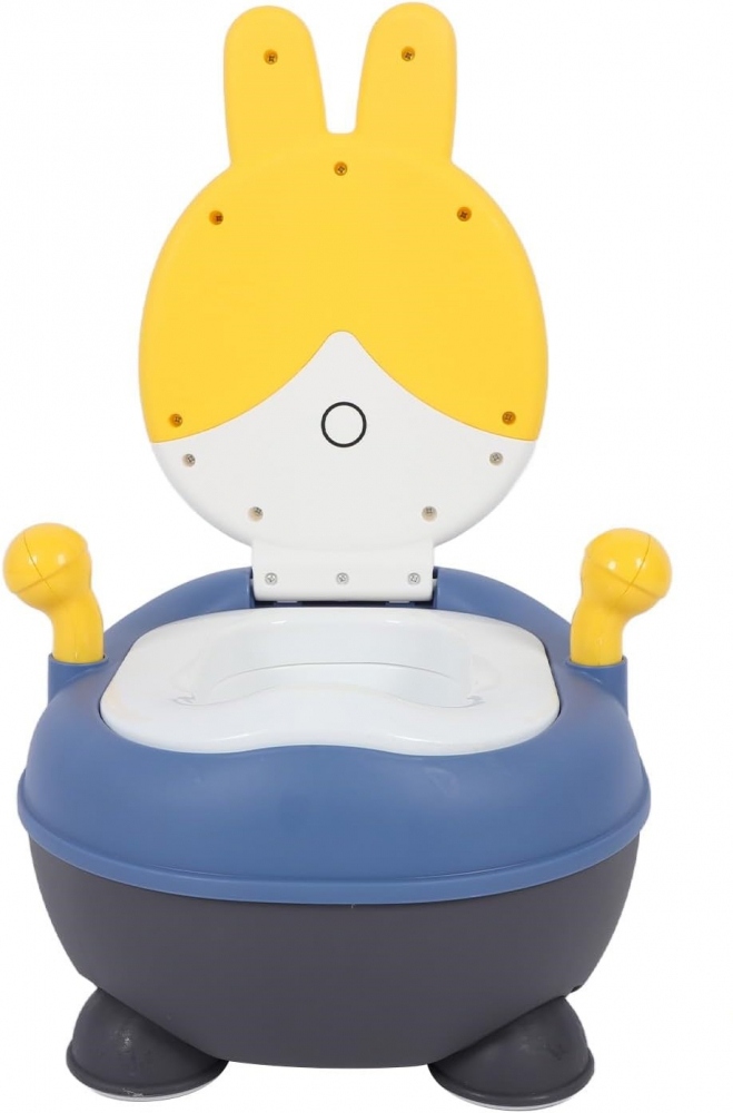 Olita pentru copii Little Mom Rabbit Yellow, cu adaptor moale din PU, vas colector detasabil, capac rabatabil cu functie de spatar ergonomic, picioruse antiaderente, dimensiune 36 x 32.5 x 53 cm