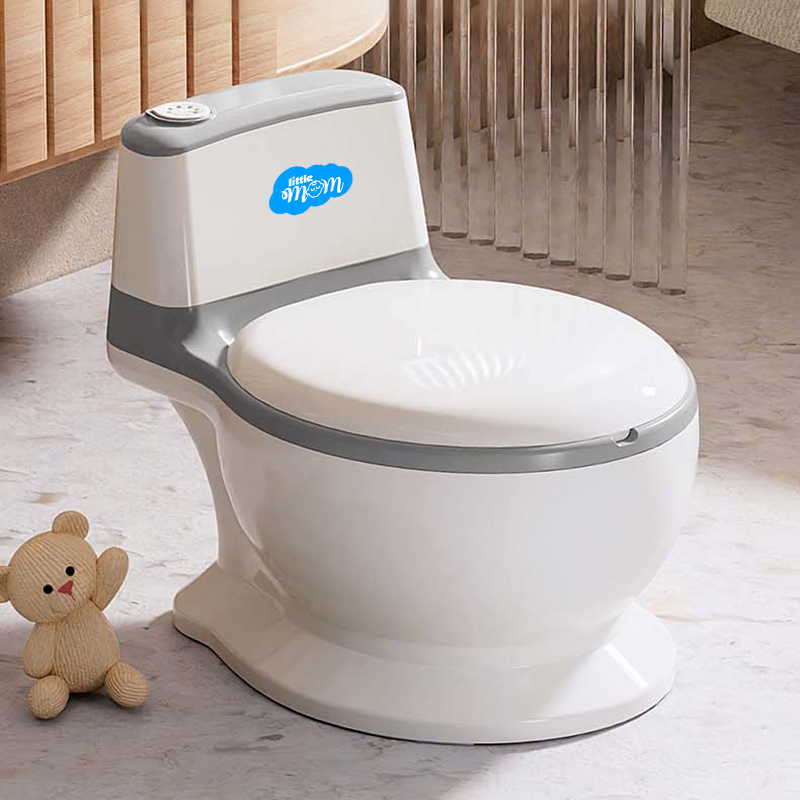 Olita tip minitoaleta Little Mom Grey cu sunete, reductor moale din spuma, margini rotunjite, insert detasabil, capac rabatabil, varsta recomandat 1 an+