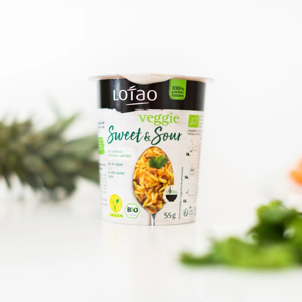 Lotao Veggie Sweet Sour cu orez cu Jackfruit in sos dulce-acrisor este solutia perfecta pentru oricine apreciaza mesele rapide si sanatoase.
