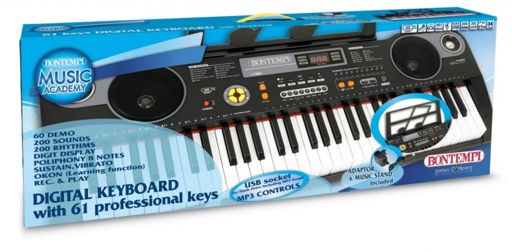 Fiecare copil isi poate demonstra perfect abilitatile muzicale pe aceasta orga de la Bontempi! 61 taste cu latime completa. 40 de sunete.