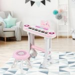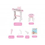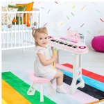 Orga electronica pentru copii Malplay, Mp3 cu 37 de clape, sunete de instrumente, ritmuri muzicale, efecte luminoase, cu Microfon pentru karaoke, cablu USB, si scaunel inclus, Pink
