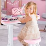 * Set Complet Muzical Copii cu Orga Electronica "LikeSmart Piano Music Show", 37 Taste, 8 Sunete de Instrumente si Ritmuri Muzicale, Microfon, Cablu USB, Scaunel, Roz