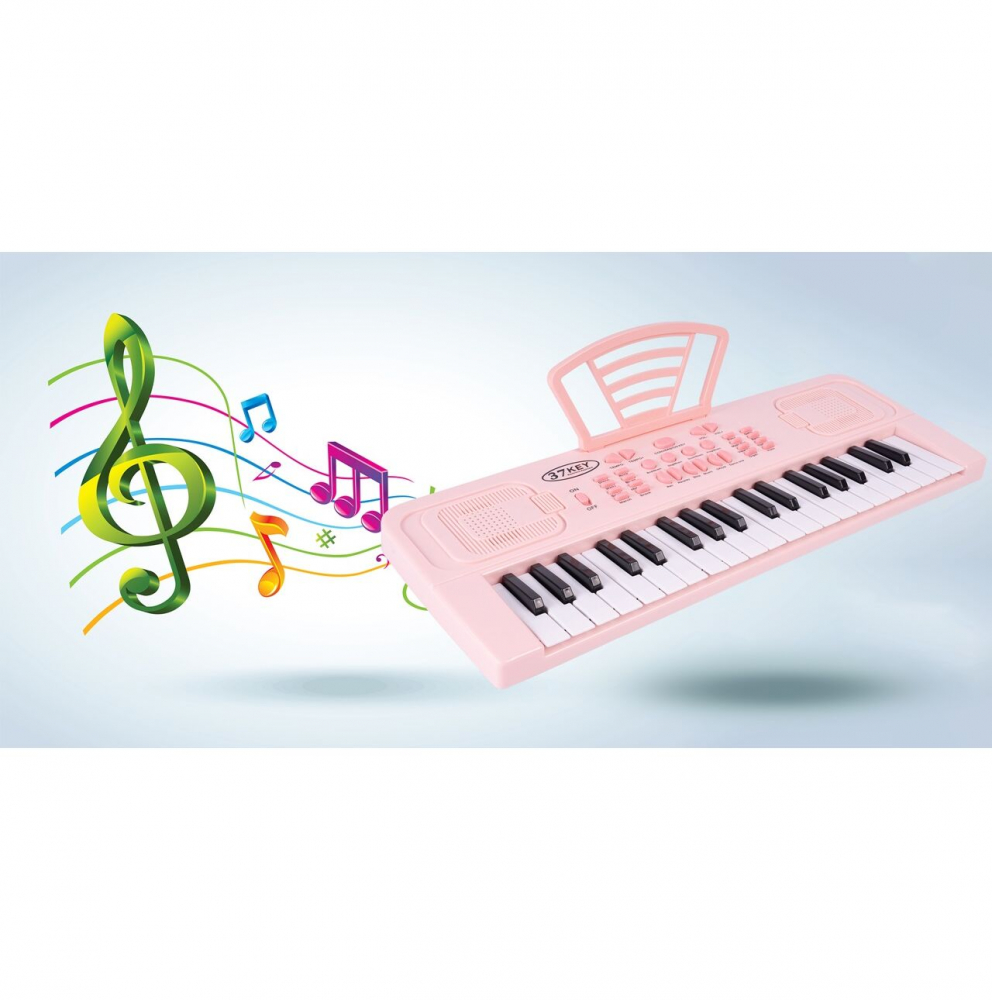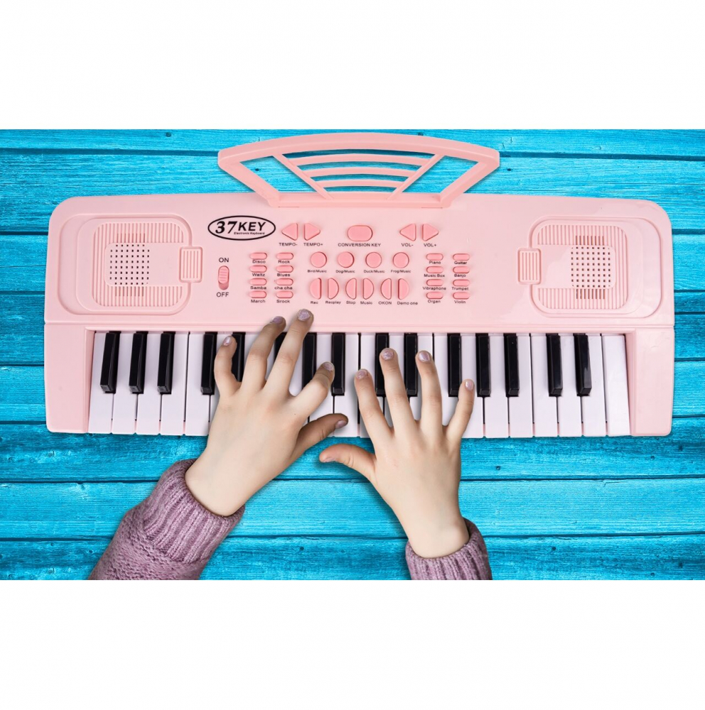 Orga electronica pentru copii MalPlay pink, claviatura cu 37 de clape, sunete multiple de instrumente, suport pentru partituri, cu microfon inclus