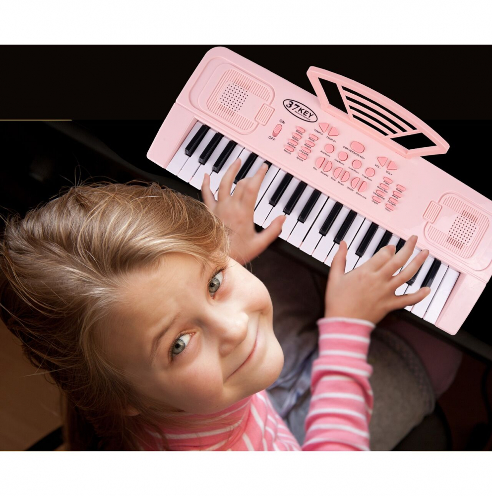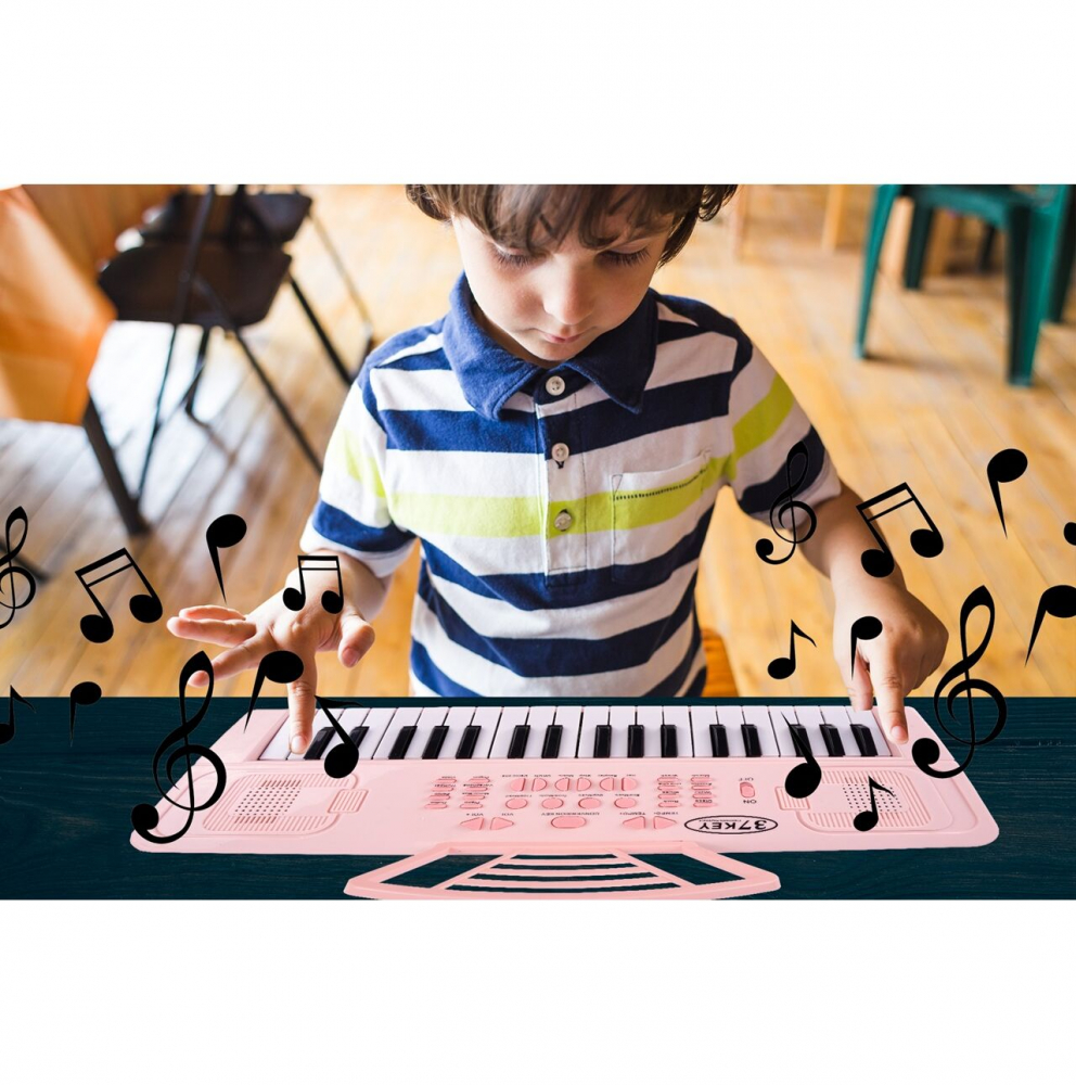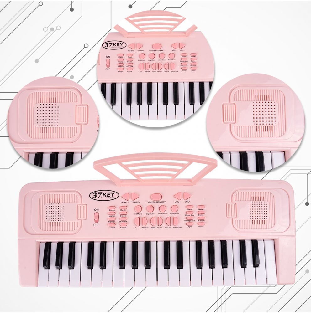 Pian cu 37 de clape: Cu 37 de clape functionale, acest pian electronic ofera o experienta de joc realista si interactiva, permitandu-i copilului sa exploreze o gama larga de note si melodii.