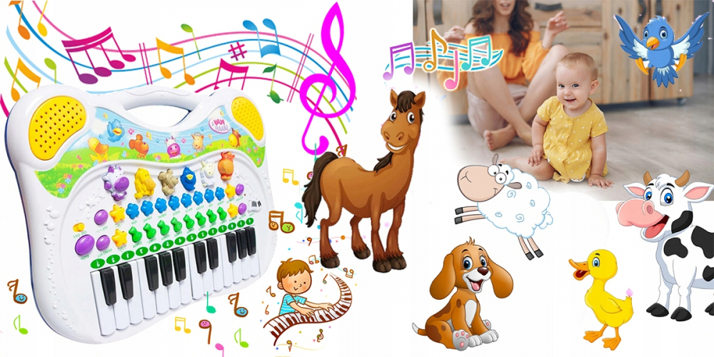 Orga muzicala pentru copii Malplay, cu sunete de animale si inregistrare, dimensiune 38 x 28 cm