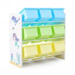 Organizator copii din lemn si MDF Ginger Home Mermaid pentru jucarii cu 9 cutii detasabile din plastic,dimensiuni 62,3x26,5x60 cm,materiale sigure,colturi si margini rotunjite