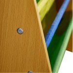 - Compartimentele din material textil si baza mare din MDF garanteaza stabilitate si durabilitate excelenta a raftului pentru copii.