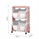 Organizator pentru copii Little Mom Piggy Blue cu 2 nivele, echipat cu 2 cutii deschise, prevazut cu roti, dimensiuni 63x40x27 cm