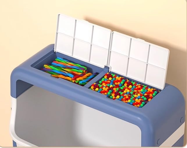 * Cel mai simpatic organizator cu 2 nivele, echipat cu 2 cutii, perfecte pentru a-ti tine jucariile, jocurile, cartile si creioanele in ordine.