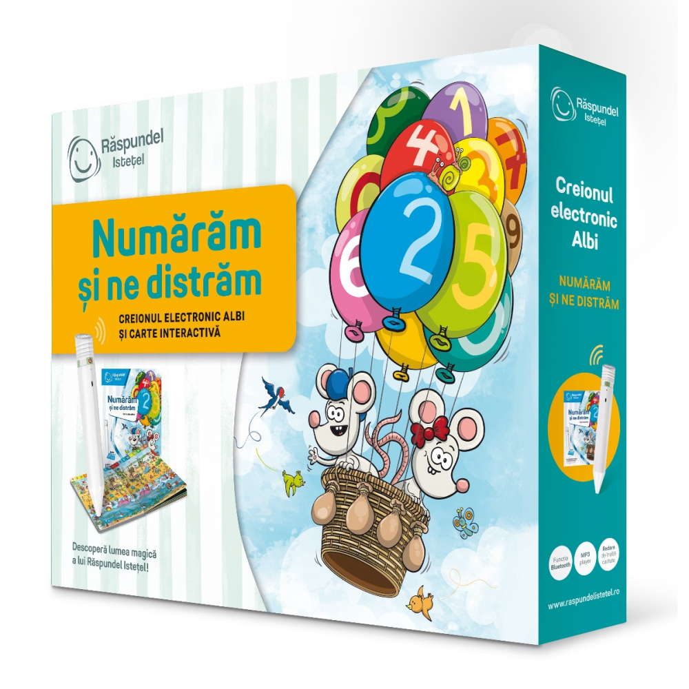 Pachetul contine creionul vorbitor ALBI 2.0 si cartea Numaram si ne distram.