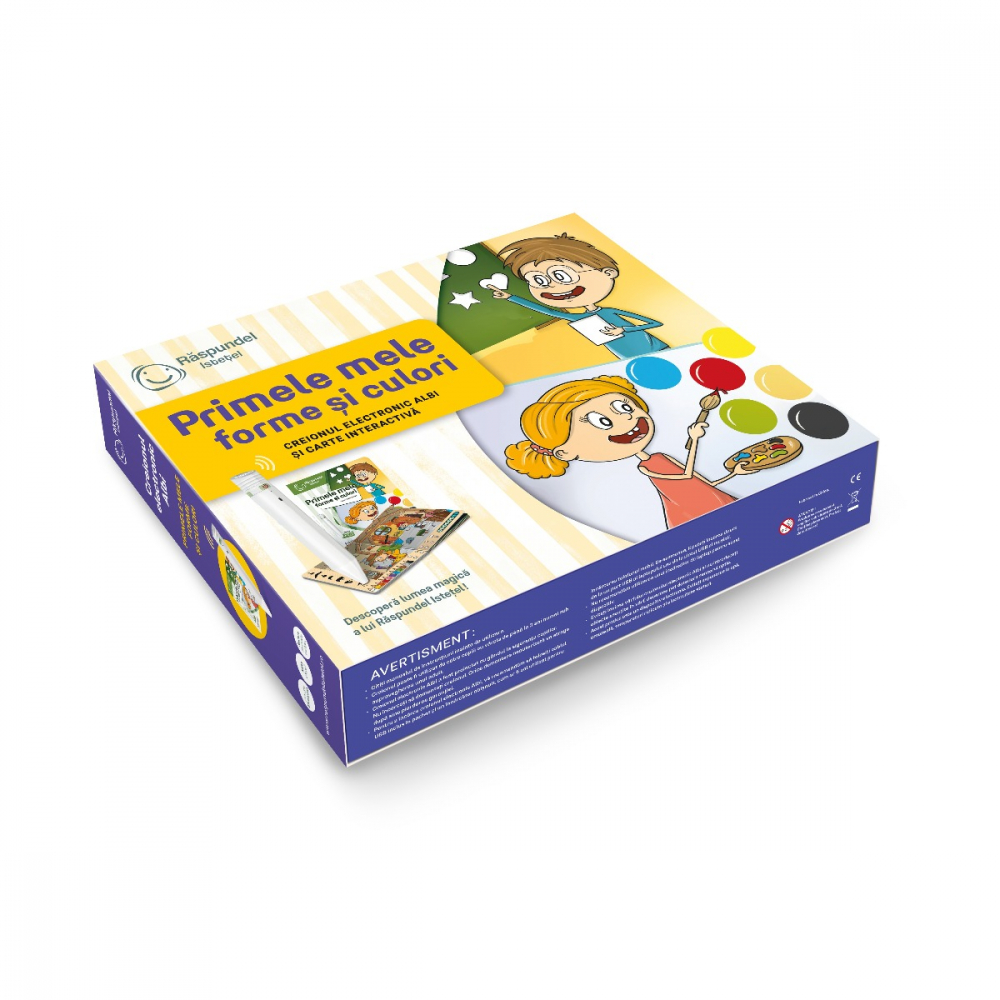 Pachetul contine creionul vorbitor ALBI si cartea Primele mele forme si culori.