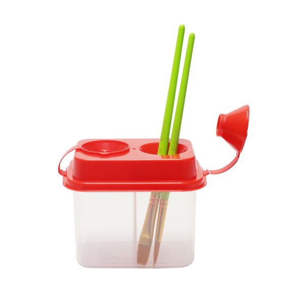Acest vas util de apa din plastic are doua compartimente si este un articol esential pentru artistii in studio sau in deplasare.