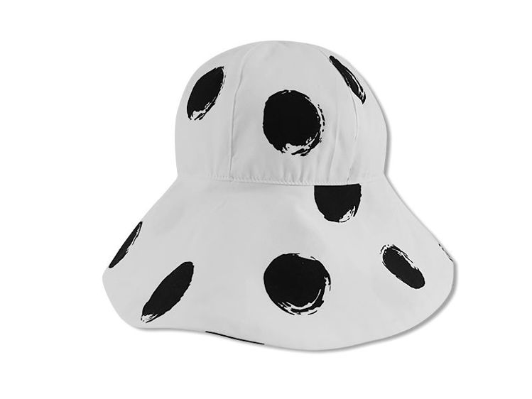 Palarie alba cu buline negre pentru fetite din bumbac subtire de vara 50 cm