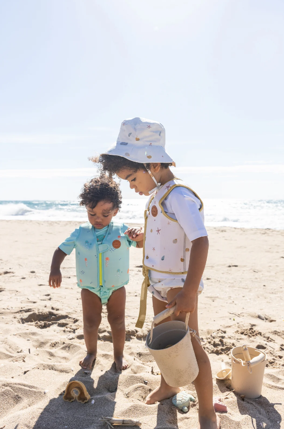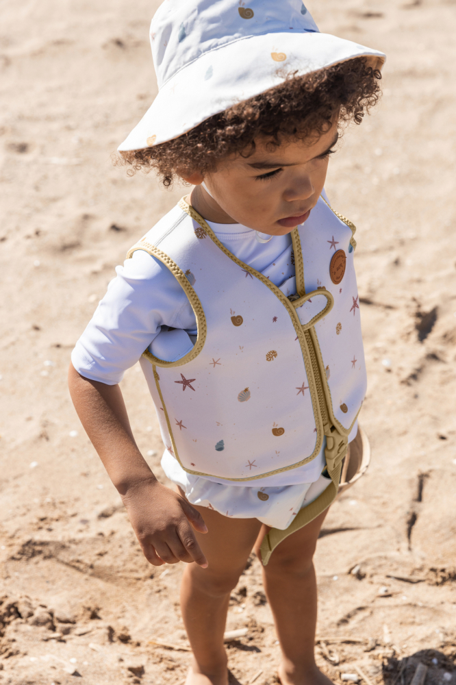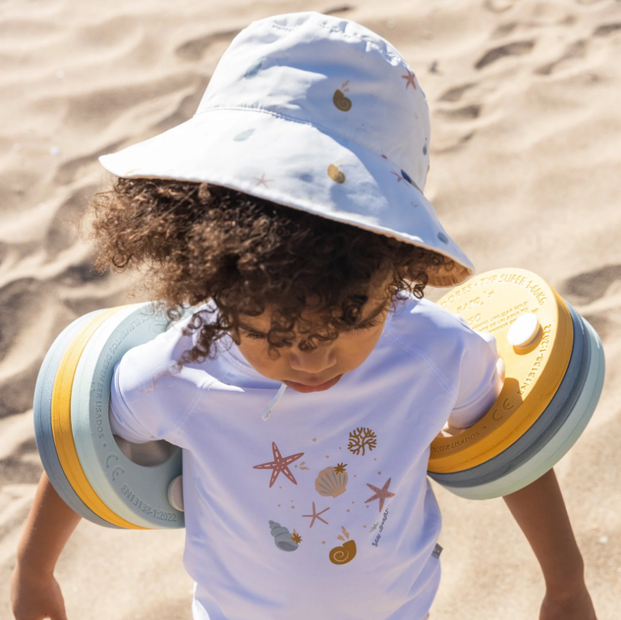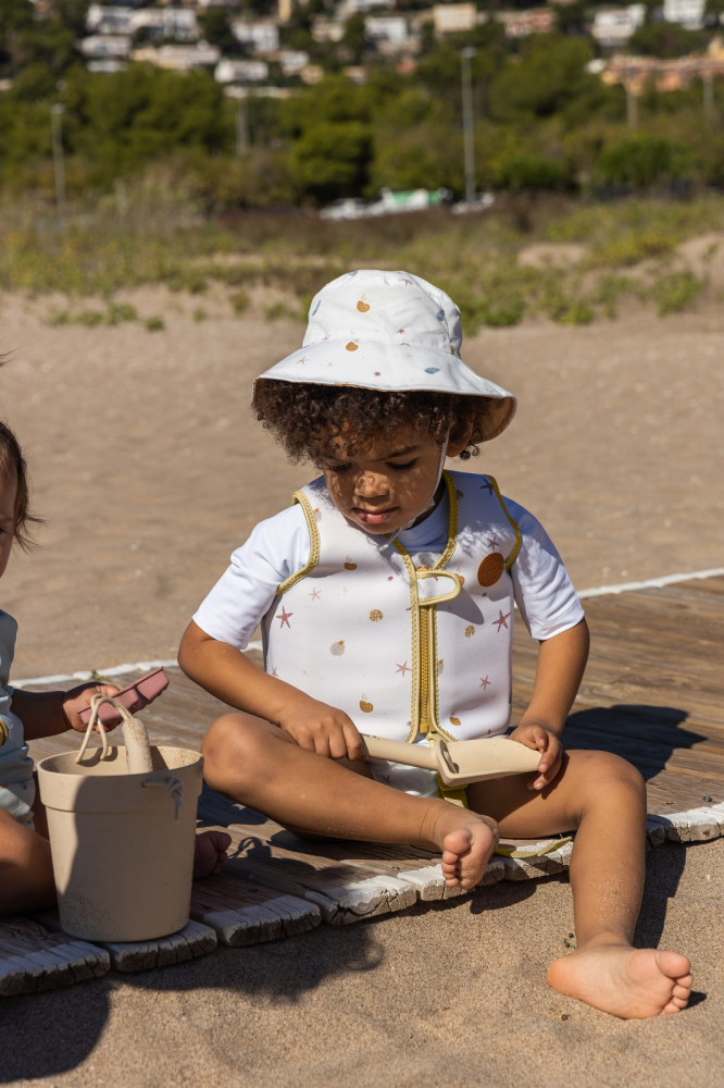 Această piesă vestimentară are protecție UV UPF 50+, având grijă de pielea micuțului tău în timp ce se distrează la soare.