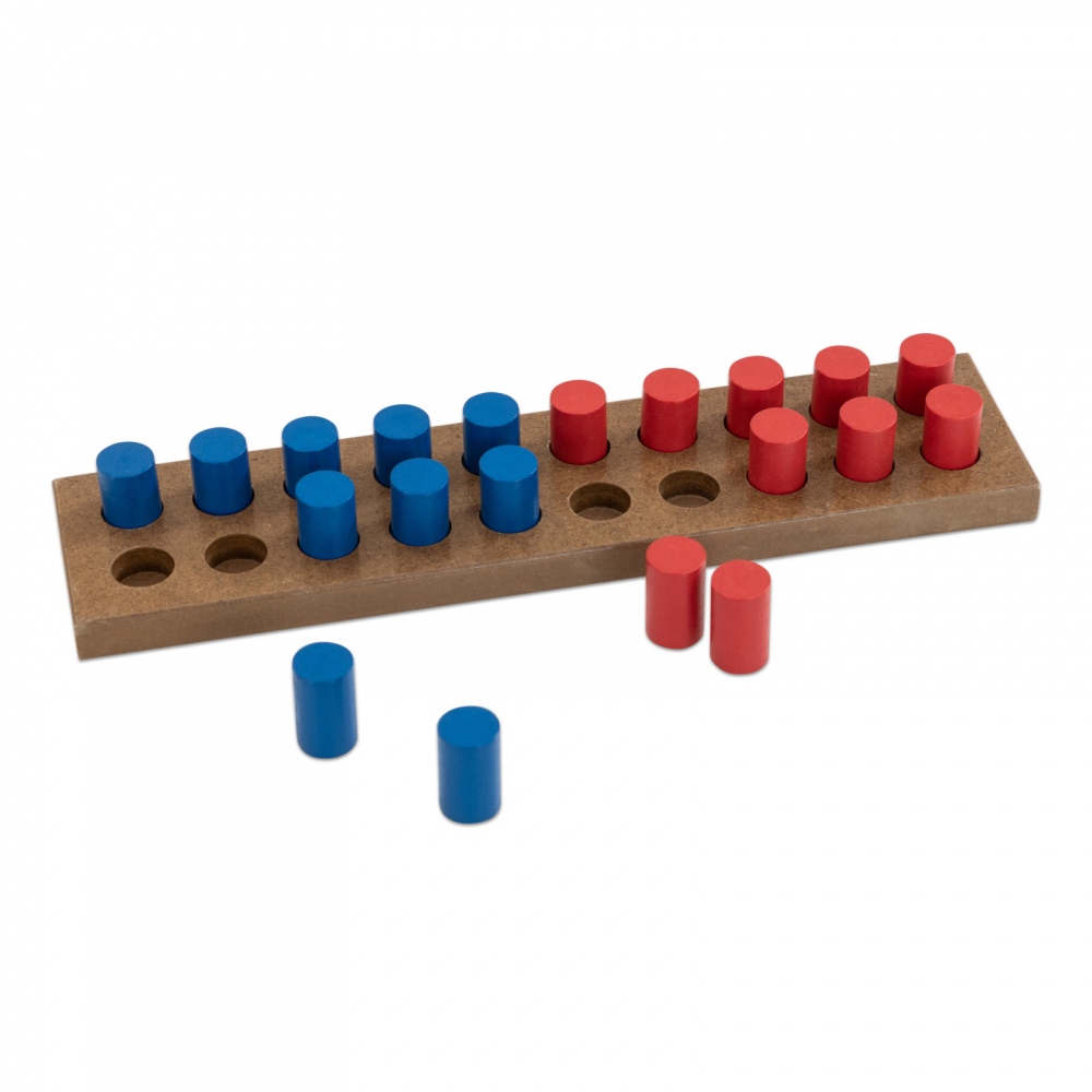 10 cilindri de lemn roșii și 10 cilindri de lemn albaștri: diametru 15 mm, înălțime: 25 mm.
