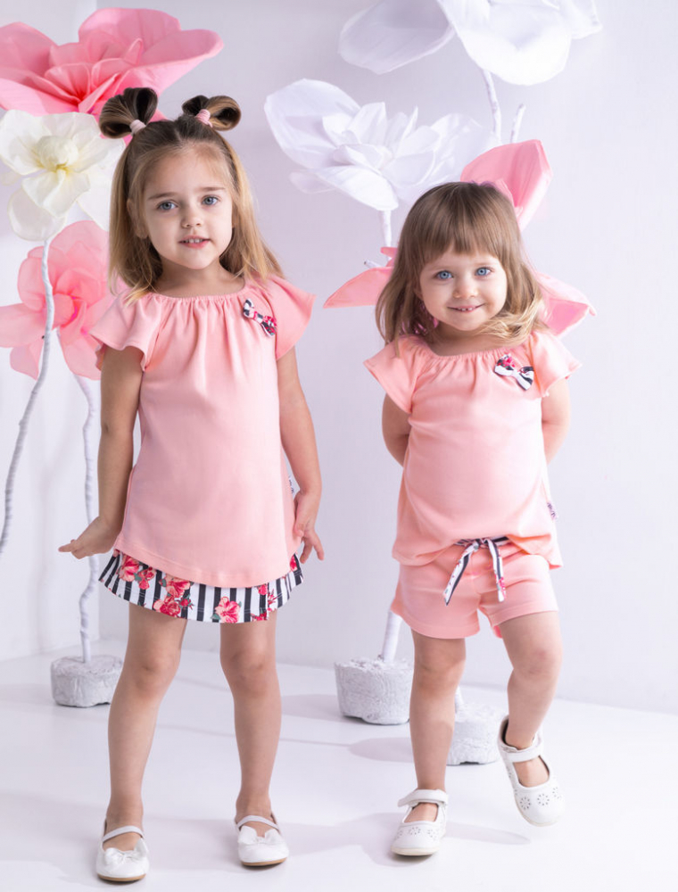 Pantalon scurt pentru fetite realizat din bumbac roz certificat Oeko-Tex Standard 100.