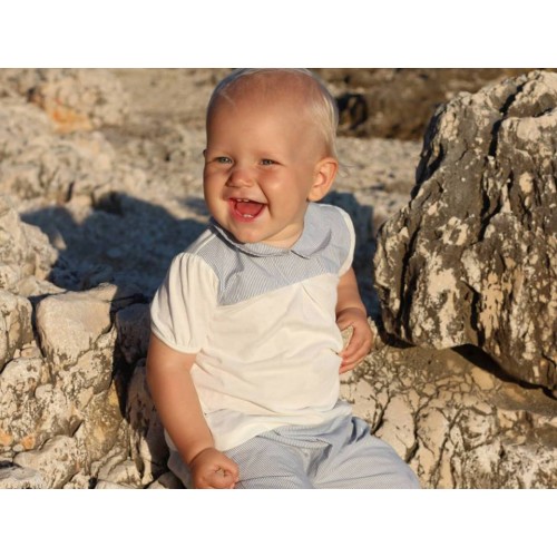 Pantaloni din bumbac organic Iobio Palermo Fine Stripe Blue 86/92