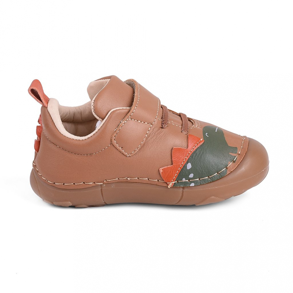 Pantofiori cu model dinozaur, dezvoltati pentru a oferi maximum de libertate, confort si protectie in etapa de incepere a mersului.