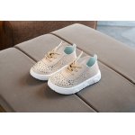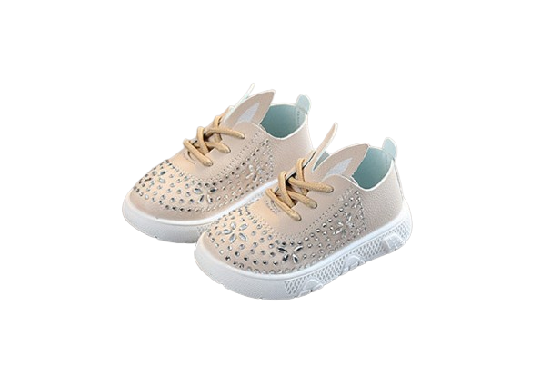 Pantofiori pentru fetite, din material tip piele ecologica, cu strasuri aplicate, se inchid cu sireturi.