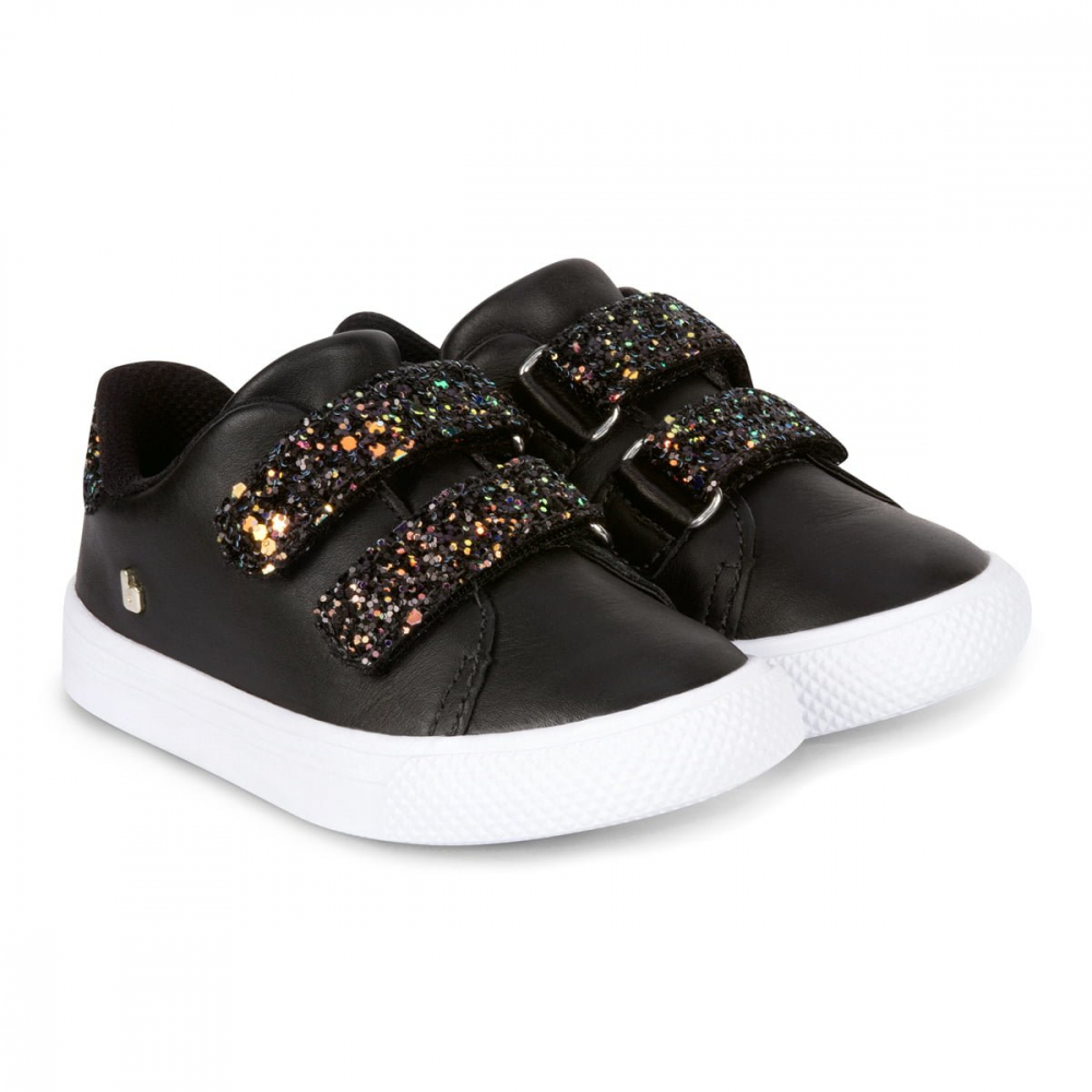 Pantofi casual pentru fete cu inchidere cu velcro si aplicatii glitter, fabricati din piele moale.