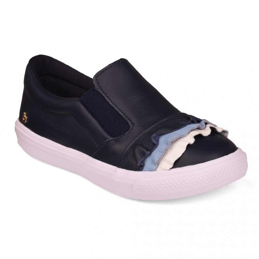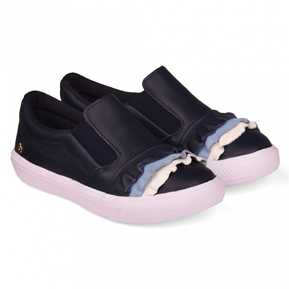 Pantofi sport pentru fete confectionati din piele moale, cu volane colorate.