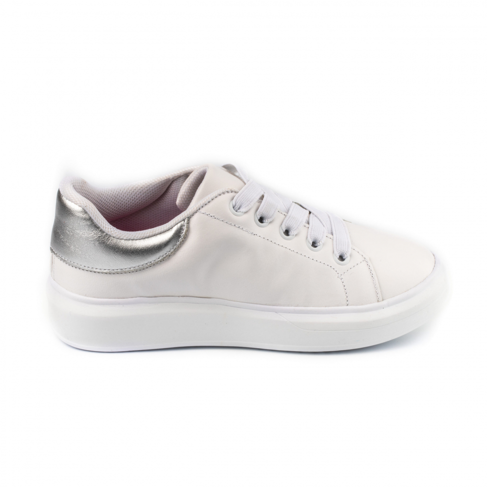 Pantofi casual pentru fete cu inchidere cu siret si aplicatii stralucitoare, fabricati din piele moale. Brantul Fisioflex este prevazut cu sistem de absorbtie a socurilor si distributie a presiunii.