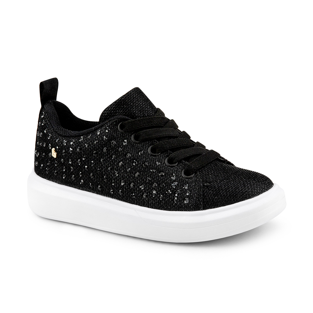 Pantofi fete Bibi Glam Black cu sireturi elastice 35 EU