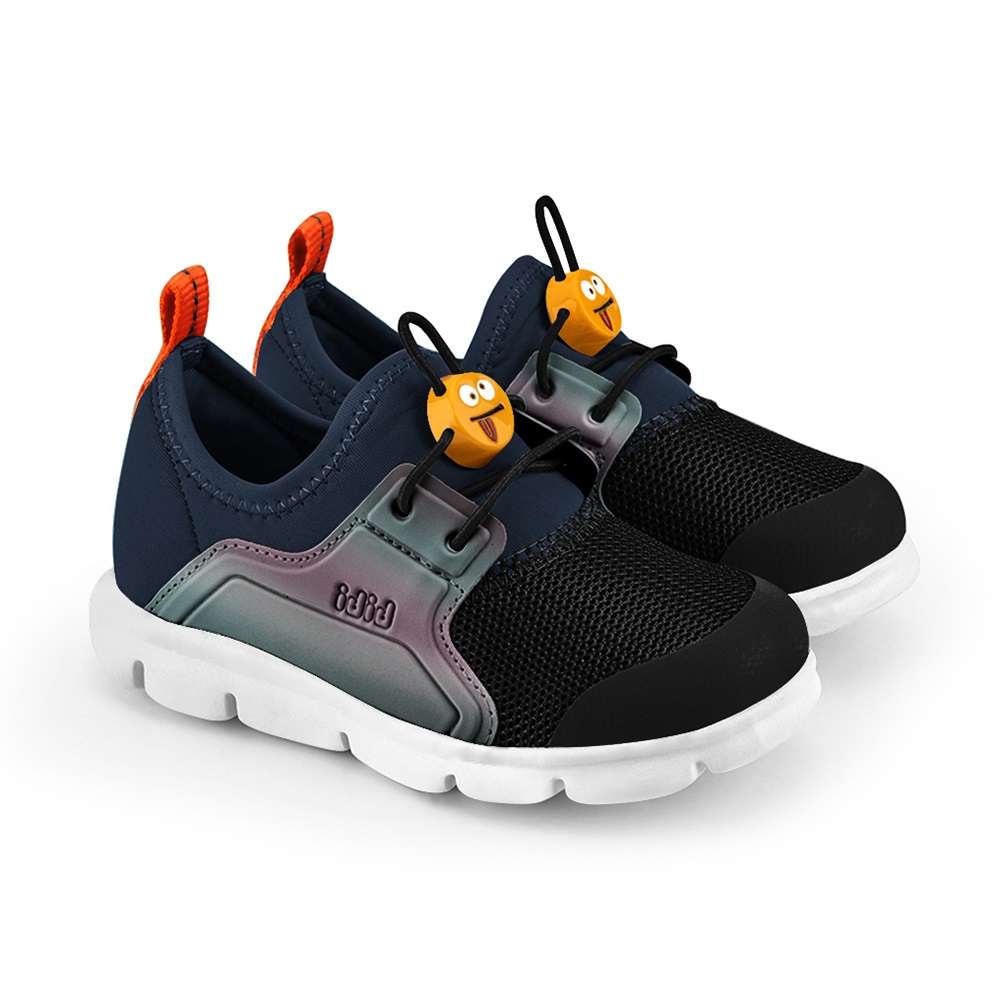 Se incalta usor si se potriveste foarte bine pe picior deoarece este confectionat din material elastic, un material respirabil si usor de curatat, cu detaliu sintetic in lateral si inchidere elastica jucausa in forma unei fete amuzante.