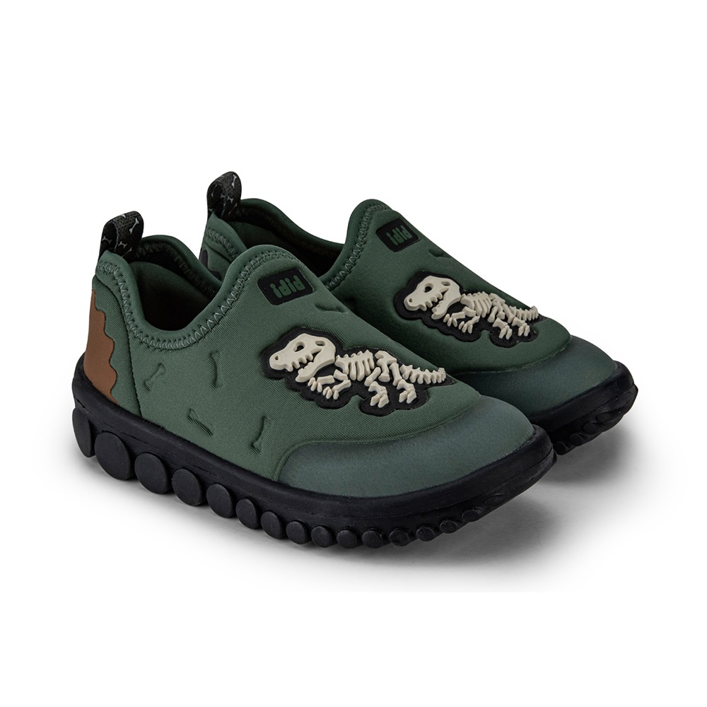 Se incalta usor, se potrivesc foarte bine pe picior deoarece sunt confectionati din material elastic, cu aplicatie dinozaur din cauciuc si detalii in relief oferind confort superior.