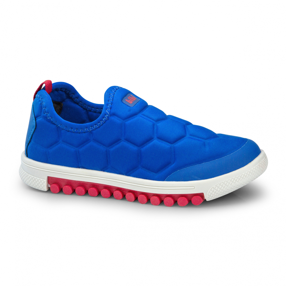 Pantofi sport albastri, cu talpa roller flexibila. Exterior din Lycra, care ii face mai usori si mai practic de purtat.