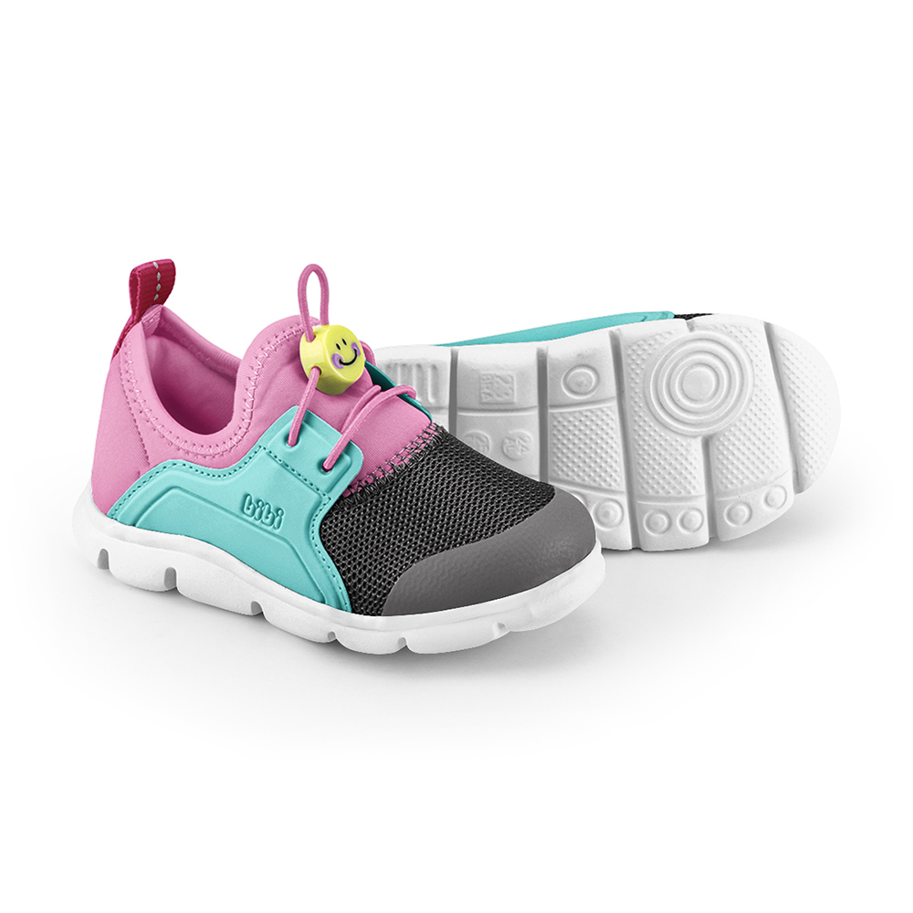 Se incalta usor si se potriveste foarte bine pe picior deoarece este confectionat din material elastic, un material respirabil si usor de curatat, cu detaliu sintetic in lateral si inchidere elastica jucausa in forma unei fete amuzante.