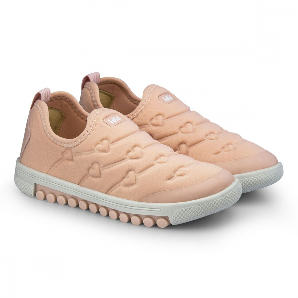 Pantofi sport roz cu inimioare, cu talpa roller flexibila. Exterior din Lycra, care ii face mai usori si mai practic de purtat.