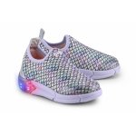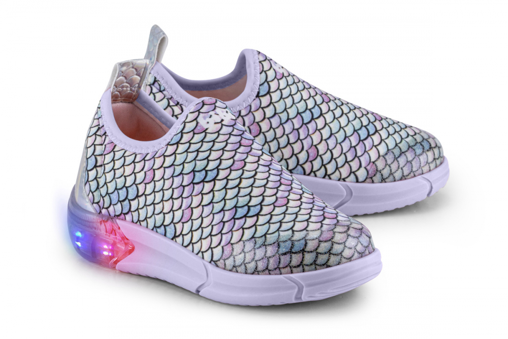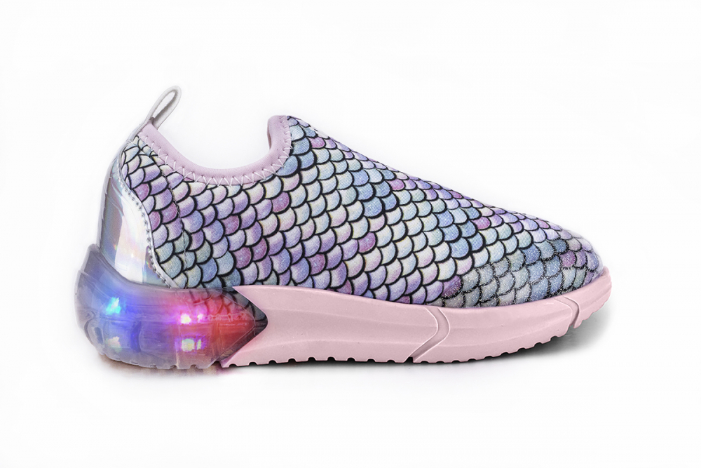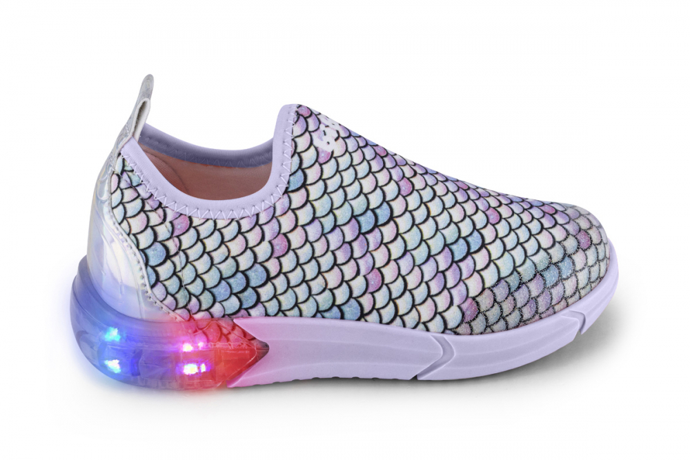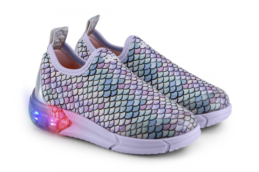 Noutatea este pe talpa, care prezinta lumini multicolore ce clipesc la fiecare pas, transformand fiecare plimbare intr-o experienta magica.