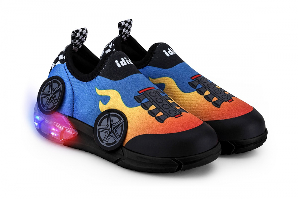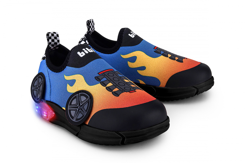 Noutatea este pe talpa, care prezinta lumini multicolore ce clipesc la fiecare pas, transformand fiecare plimbare intr-o experienta magica.
