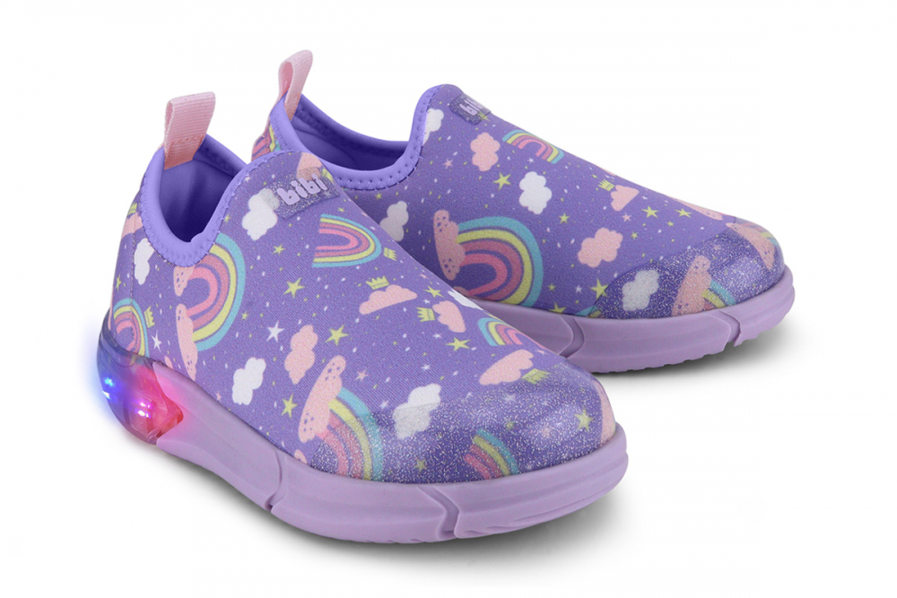 Noutatea este pe talpa, care prezinta lumini multicolore ce clipesc la fiecare pas, transformand fiecare plimbare intr-o experienta magica.