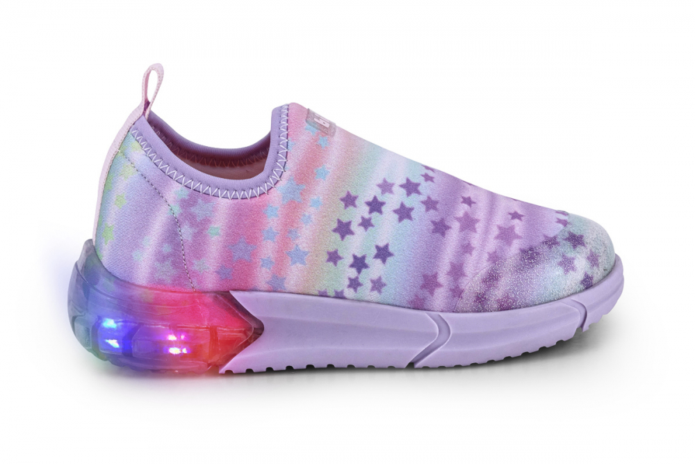 Noutatea este pe talpa, care prezinta lumini multicolore ce clipesc la fiecare pas, transformand fiecare plimbare intr-o experienta magica.