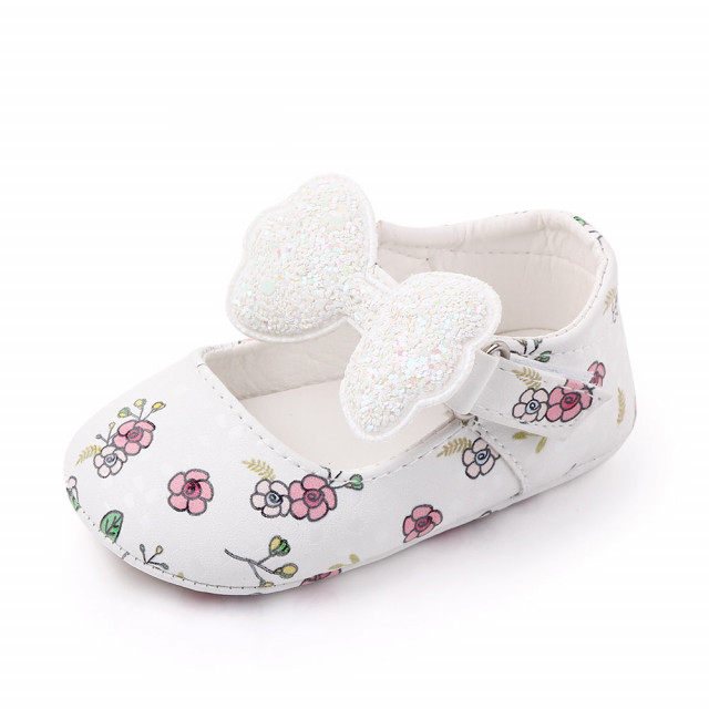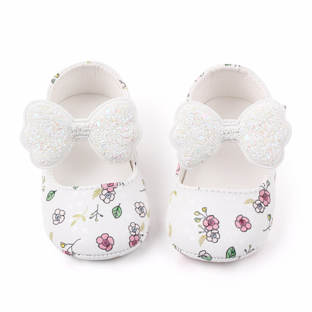 Pantofiori albi cu floricele si fundita 6-9 luni marimea 19