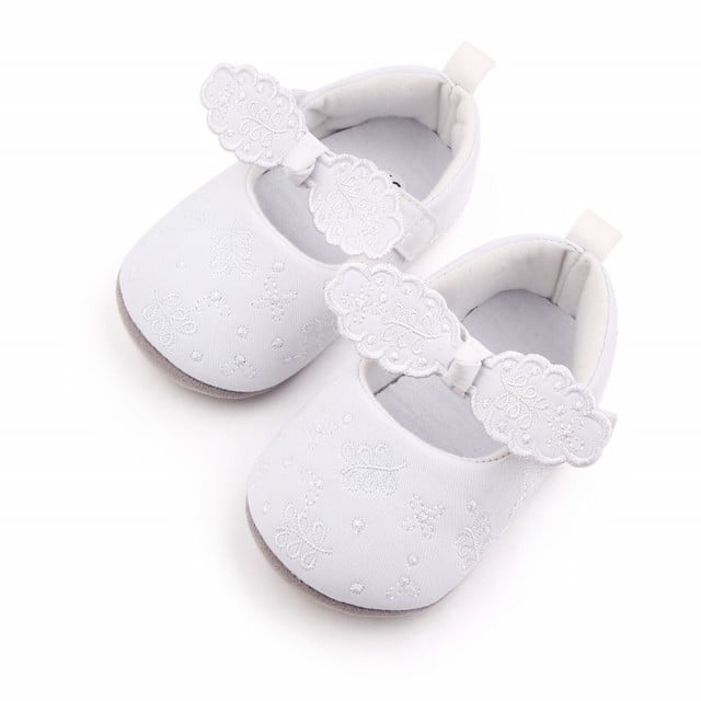 Pantofiori albi cu fundita brodata pentru fetite 9-12 luni marime 20