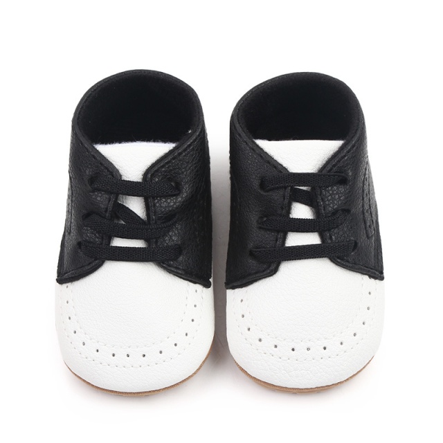 Pantofiori albi cu negru pentru baietei 3-6 luni marimea 18