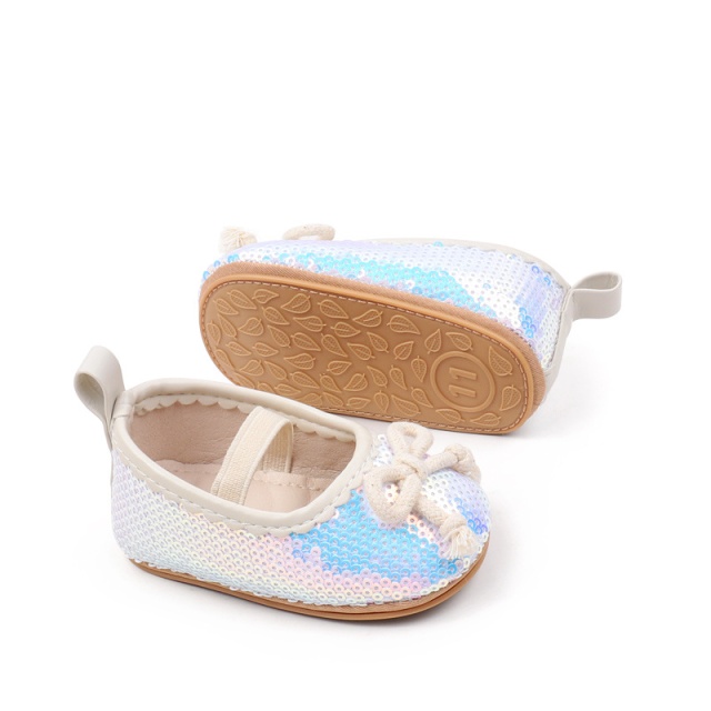 Pantofiori pentru bebelusi cu paiete stralucitoare si fundita decorativa sunt alegerea perfecta pentru ocazii speciale sau pentru a adauga un plus de eleganta tinutelor zilnice ale celor mici.