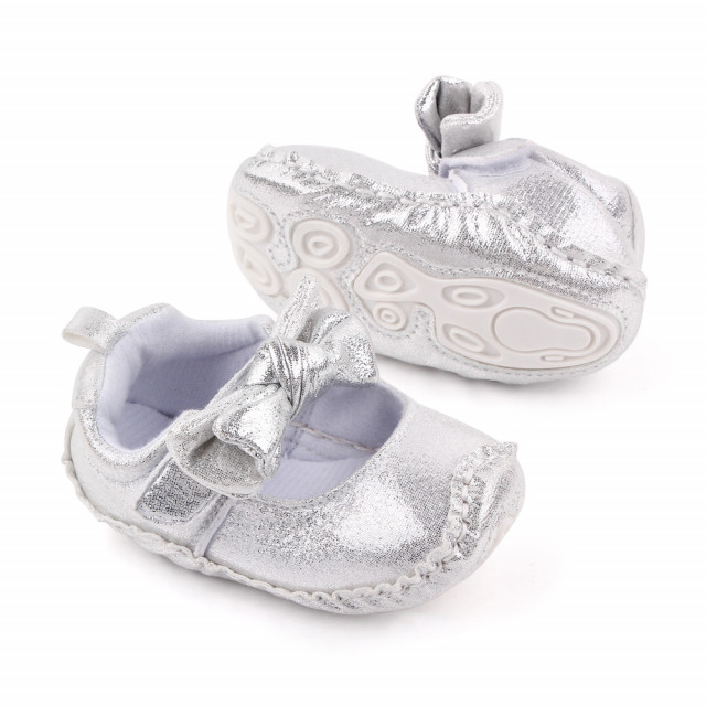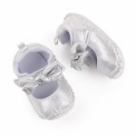 Pantofiori argintii cu fundita pentru fetite 6-9 luni marime 19