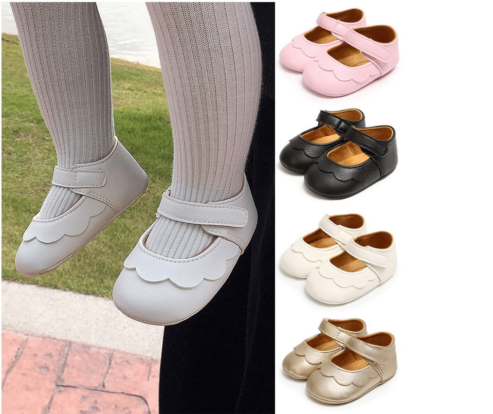 Pantofiorii sunt din piele artificiala si au o bareta de sustinere cu arici. De asemenea, in partea din fata au un volan din acelasi material si culoare pentru un plus de eleganta.