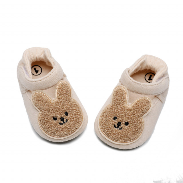 Pantofiori crem pentru fetite 6-9 luni Iepuras marimea 19