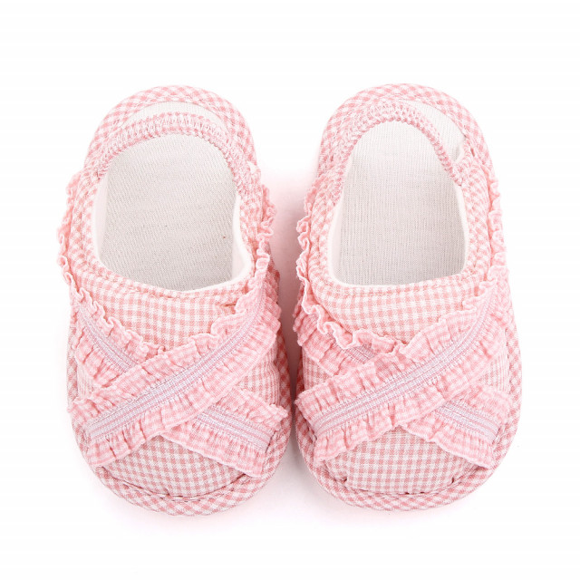 Pantofiori decupati in carouri roz 3-6 luni marime 18