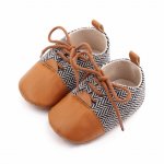 Pantofiori pentru bebelusi din material textil cu insertie de material tip piele ecologica, se inchid cu sireturi. Sunt potriviti si pentru tinutele elegante ale copilasului.