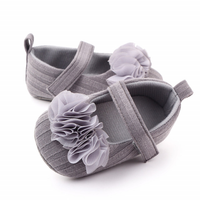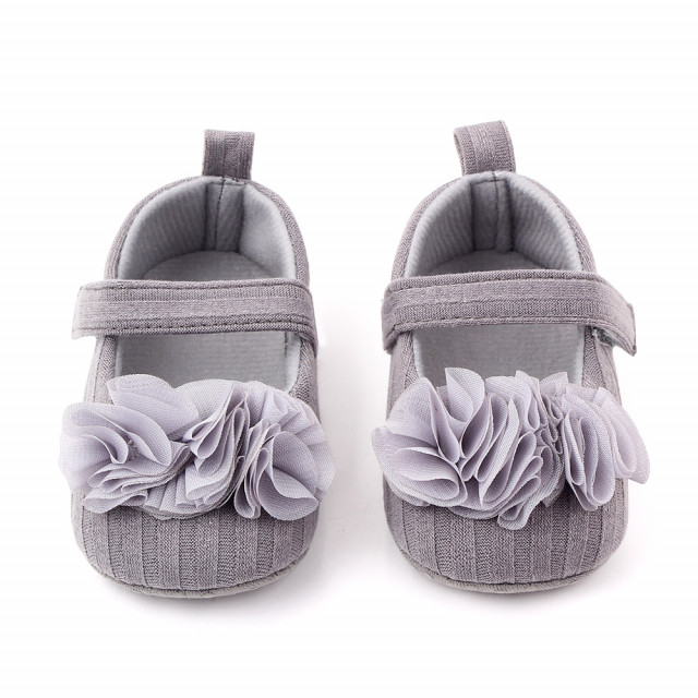 Pantofiori gri cu floricele din tulle aplicate 3-6 luni marime 18