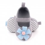 Pantofi bebelusi gri cu floare bleu decorativa – eleganti si confortabili pentru micutii tai.