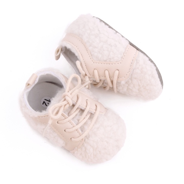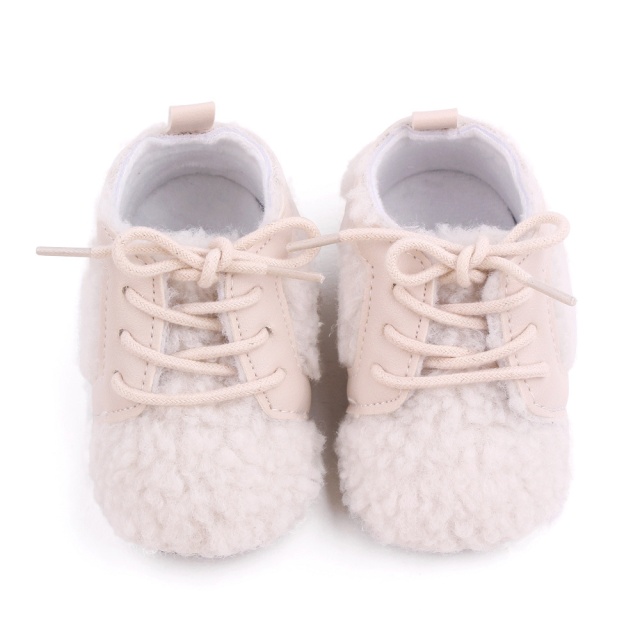 Pantofiori adorabili pentru bebelusi, ivoire, cu un design pufos si confortabil.