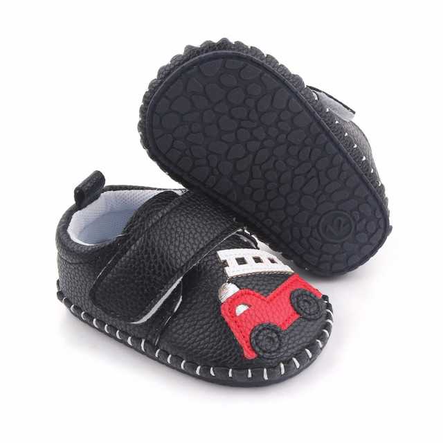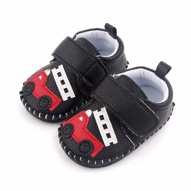 Pantofiori negri pentru baietei 3-6 luni Masinuta marimea 18