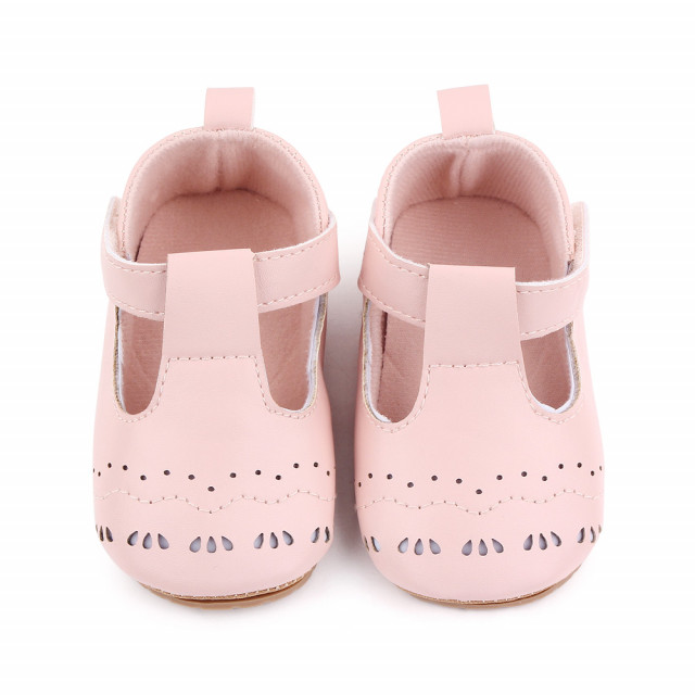 Pantofiori pentru fetite din material tip piele ecologica, cu model decupat. Se inchid cu bareta cu arici intr-o parte.